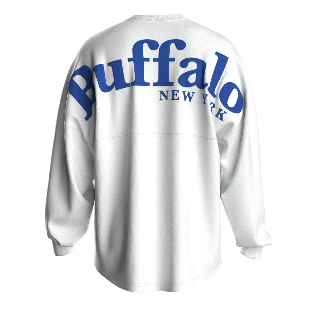 Serif Buffalo Longsleeve Tee in White/Royal