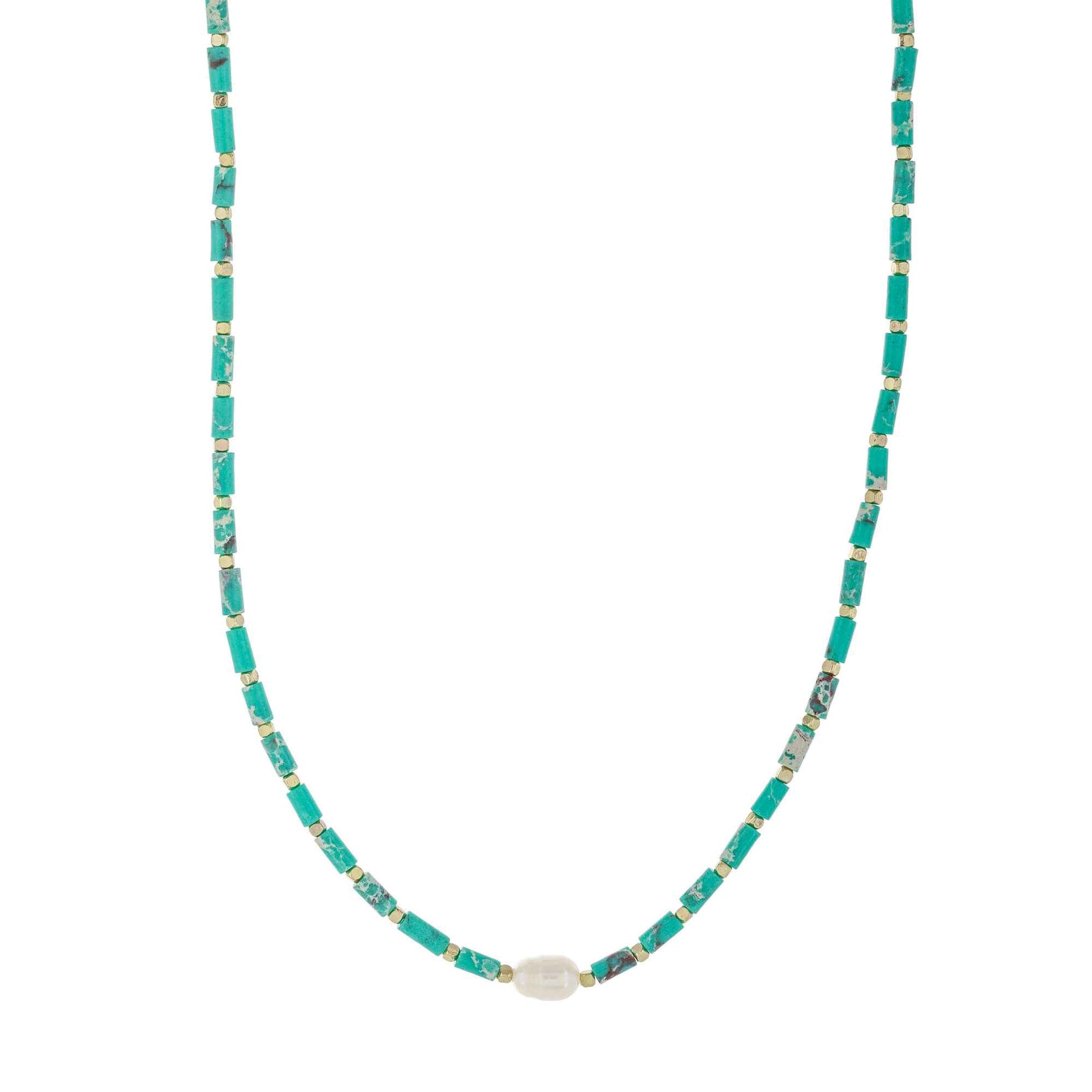 This elegant necklace features a stunning combination of semiprecious beads and pearls. The perfect accessory for any fashionista, this necklace is sure to add a touch of sophistication to any outfit.